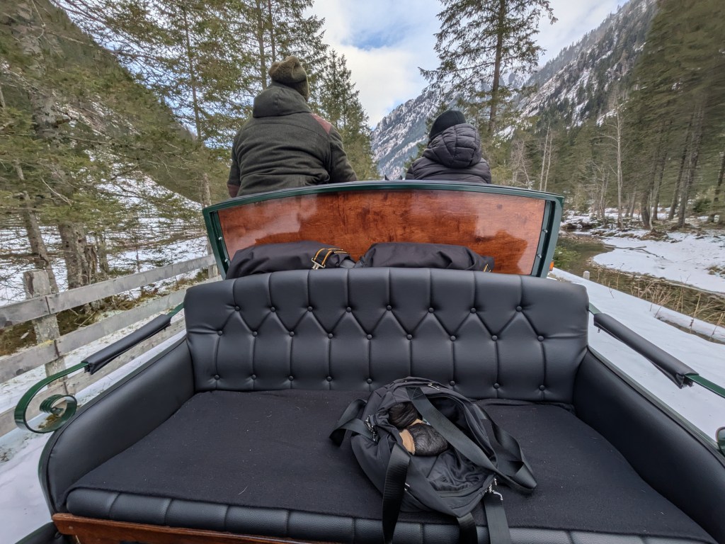 There was nothing special planned by the hotel on Christmas Day since Christmas Eve is the main event, so I planned for a horse drawn sleigh ride. There were two options – to do a ride through Großarl picked up directly from the hotel or a ride through the countryside. I opted for the latter, but didn’t realize we’d have to take a taxi to a village a bit further away which was an additional cost. But the hotel arranged for the sleigh ride and the taxi for us, so that was helpful. The sleigh ride was just the icing on the Christmas cake! Kiddo fell asleep to the gentle rocking of the sleigh, so Husband and I had a chance to chat and enjoy the spectacular countryside.